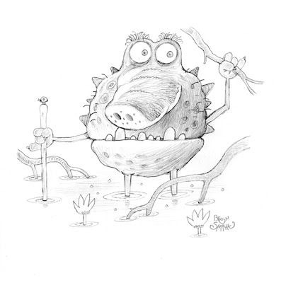This time it was a little swamp creature that crawled out of my sketch book last night. Let me know if you have any favorite beasties among the sketches, because I will be choosing a portion to "make the cut" for the book.