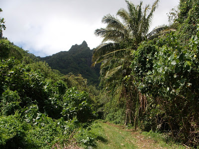 In the foreground you can see the hint of a game trail which leads to a thick, dark and mysterious region of jungle, with a sharp peak in the distance. We called this peak the "Needle" for its sharp point (which we scaled later that day). It was in this dark jungle undergrowth on Monster Island that we spotted the Zilch.